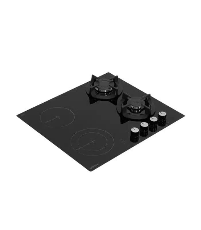 Plaque de cuisson ASTECH gaz et électrique 2×2 feux PL60CG600NO est un modèle mixte encastrable de 60 cm combinant 2 foyers à gaz et 2 foyers électriques, offrant ainsi une flexibilité totale face aux coupures de courant ou aux pannes de gaz.